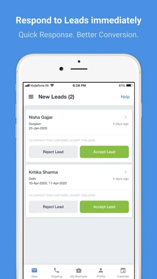 Instantly on your app - get new customers that match your specialization, location preferences & price range. You can accept the lead & contact the customer directly! Or you can reject the lead if you’re busy on those days, or you cannot fulfill the requirements.