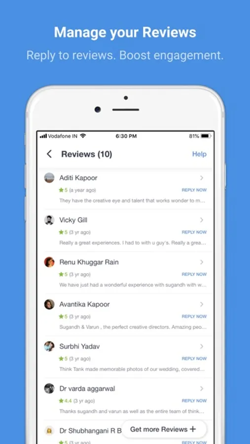 Manage your customer reviews directly from the app. Get more reviews & reply to them - generate more engagement on your ShaadiSaga profile.