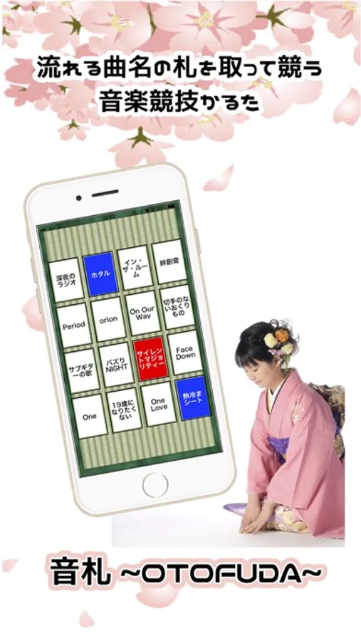 (音楽)+(かるた)を組み合わせた新感覚ゲーム!流れてくる音楽を当てて札を取っていく対戦型ゲームです。