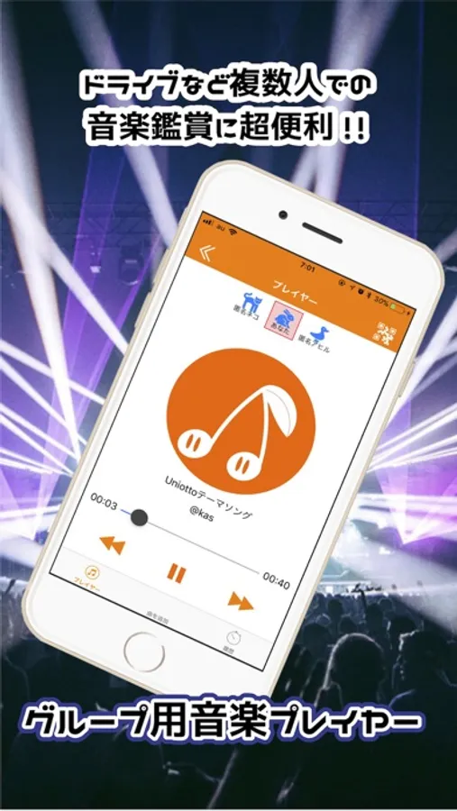 UniottoはiPhone・iPod・iPadに入れた音楽を使って、みんなと楽しむことができるアプリです。