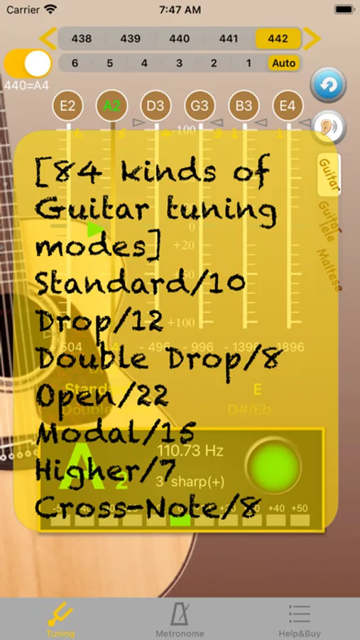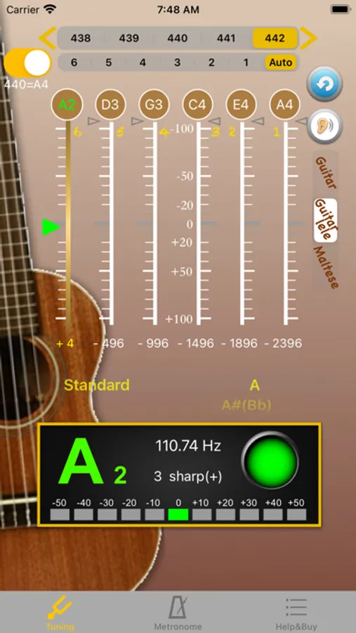 - A4 Frequency adjustment: choose 428~452 frequencies for A4 string.