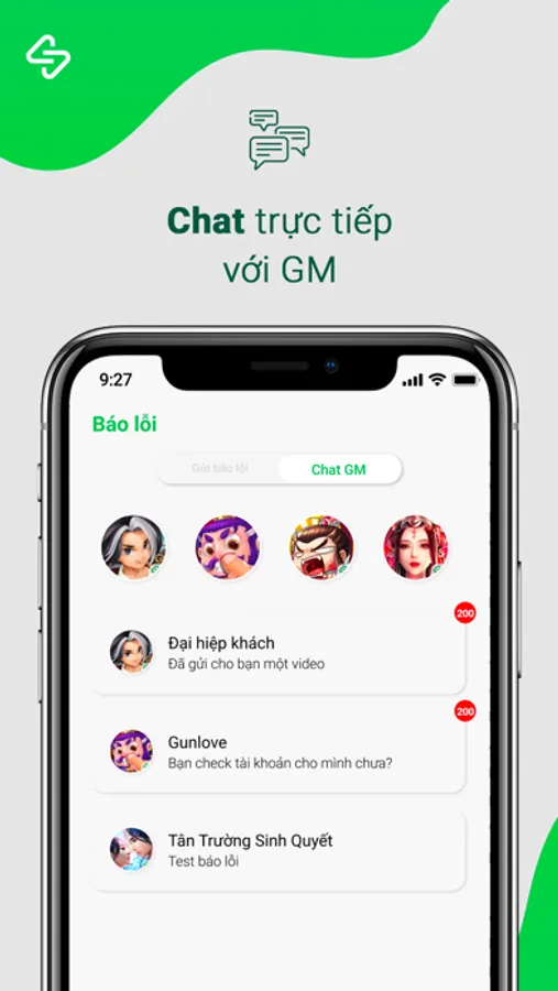 - Báo lỗi trực tiếp đến GM và được ưu tiên xử lý, giải quyết không chờ đợi
