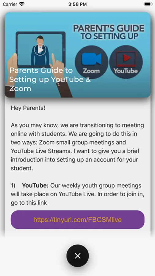 The FBC Student Ministry app is designed to help you stay connected with everything happening in the FBC Kerrville Student Ministry. With this app, you are able to stay up to date with the youth ministry schedule, receive notifications and reminders about upcoming events.