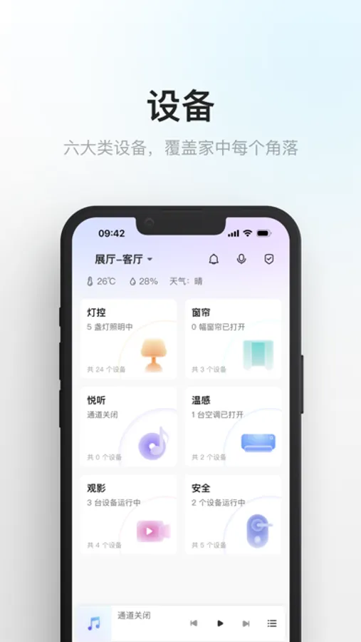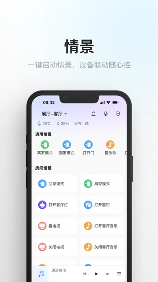 远程控制、轻松体验:无论身在何处,都可以通过接入互联网的手机或平板电脑等,连接至您的智能家居系统,操控家中各项设备,轻松体验全新智能生活。