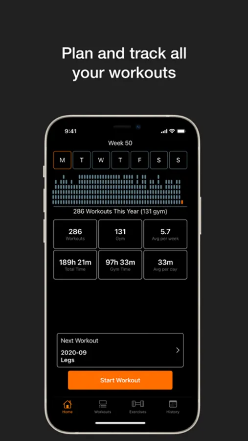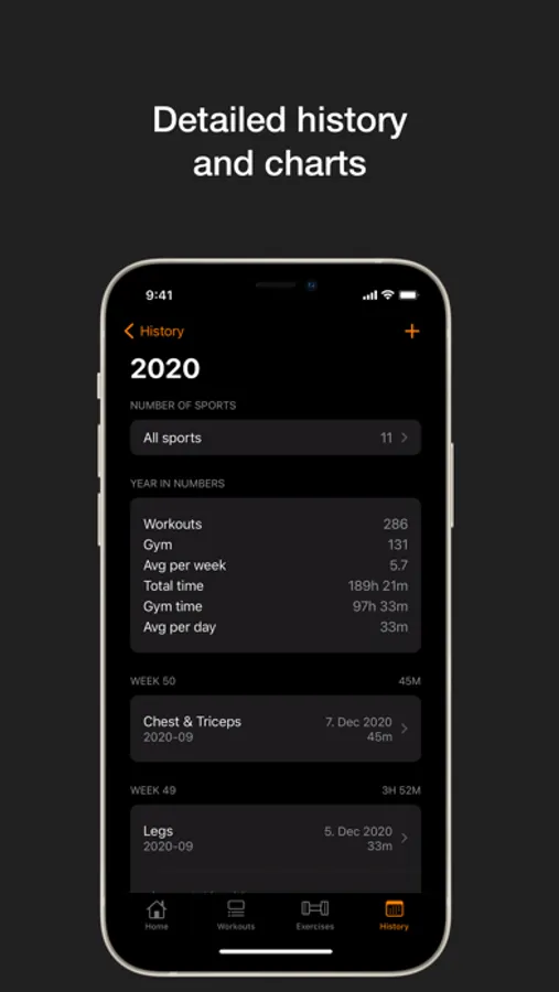 Gym and workout tracking app. Plan gym programs with days, exercises and sets. Follow your progress with history, metrics and charts. Get overview for the current and past years and easily compare workout time or number of gym visits.