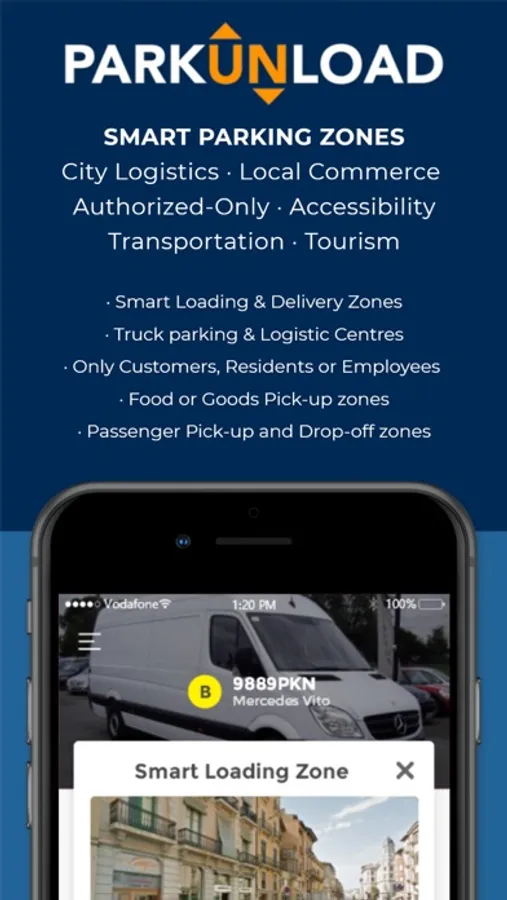 Parkunload Smart Parking app regulates, controls, and monitors time-limited parking zones with digital parking rules to increase parking turnover, establish priorities and increment free parking spaces to promote Sustainable Mobility in sectors such as:
