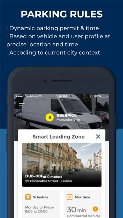 - Customers-only parking zones at Local Commerce and Restaurants. Including Click & Collect services for Customers and Delivery fleets.