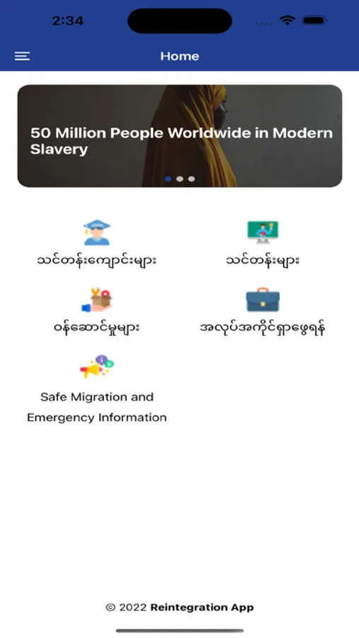 This mobile app was jointly developed by UNICEF, Ministry of Social Welfare, Ministry of Education, and all members of Inter-Ministerial Working Groups for Economic Reintegration programmer including reintegration of survivors of Trafficking in Persons, Street and Working Children, Child Labour, Children contract with the Law, Migrant Children and young adults in Myanmar along with reintegration of Children Associated with Armed Forces and Armed Groups (CAAFAG).