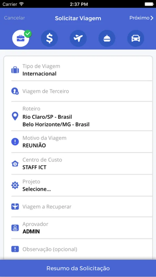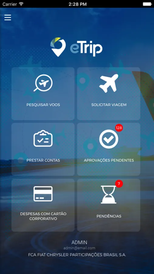 Este é o aplicativo oficial do eTrip (sistema de viagens corporativas do Grupo FCA e CNHi).