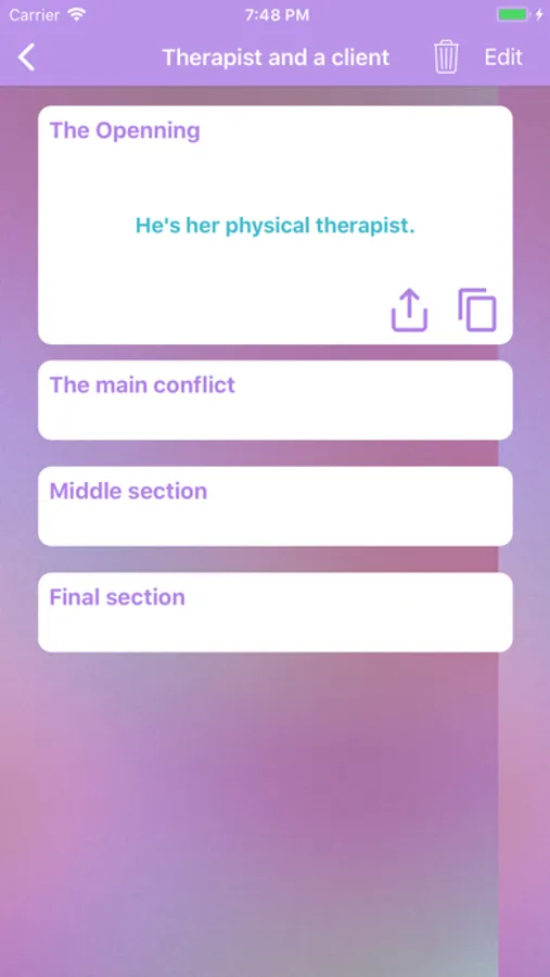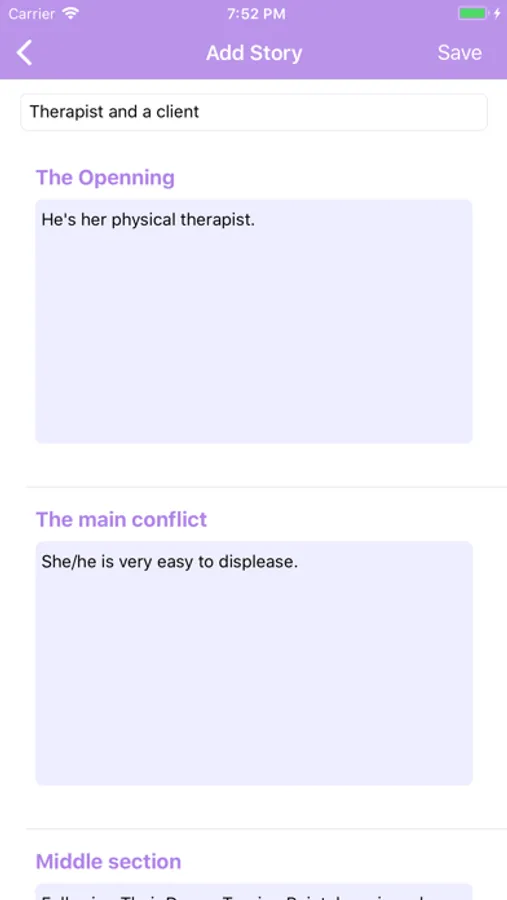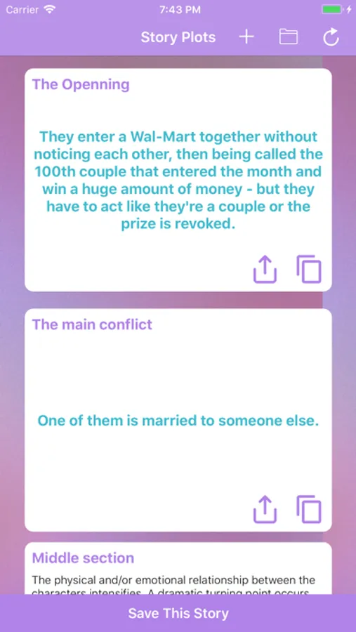 There is also a section where you can submit your own creative plots and stories ideas! Access it from main screen by pressing '+' icon. Or save any story you like to customize it later!