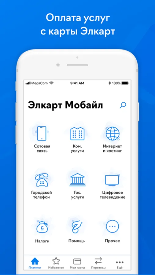 Это новый продукт ЗАО МПЦ по мобильной банковской услуге, позволяющий осуществлять платежи в пользу третьих лиц в режиме онлайн 24/7 посредством платежной карты Элкарт, выпущенной любым банком-участником ПС Элкарт через мобильное приложение. Доступны следующие основные возможности: