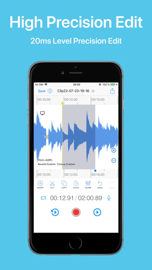 Easy Audio Cut support the recording to add reverb effects, chorus effects, whether you record guitar playing or piano solo, or classroom lectures, poetry recitation, oral practice, give you a high quality recording.