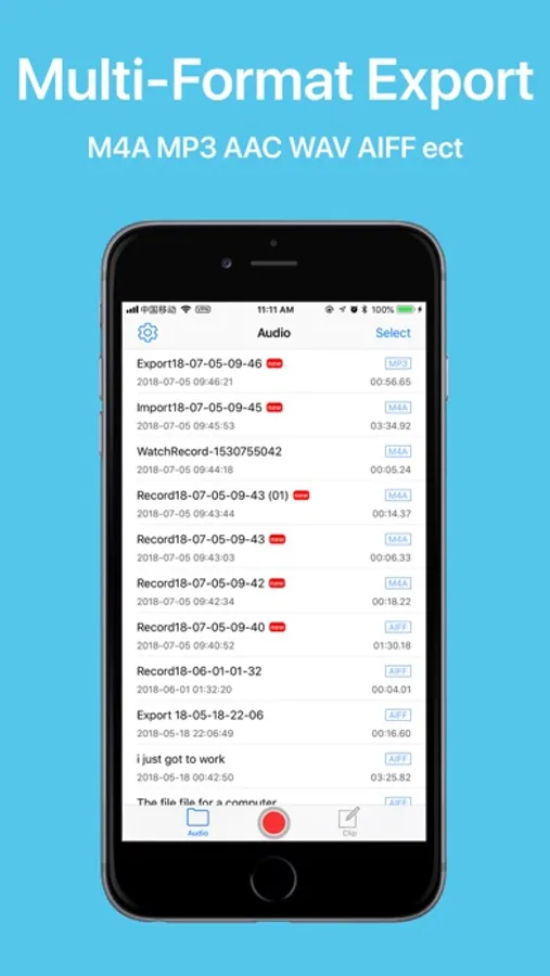 8. Support export m4a, mp3, aac, wav, aiff , etc, format to share.