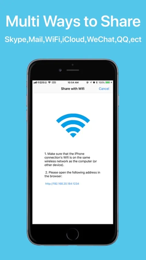 5. Support Wifi LAN share audio, SMS sharing, E-mail sharing, and third-party software ( Twitter,WeChat, etc.) to share (AirDrop).