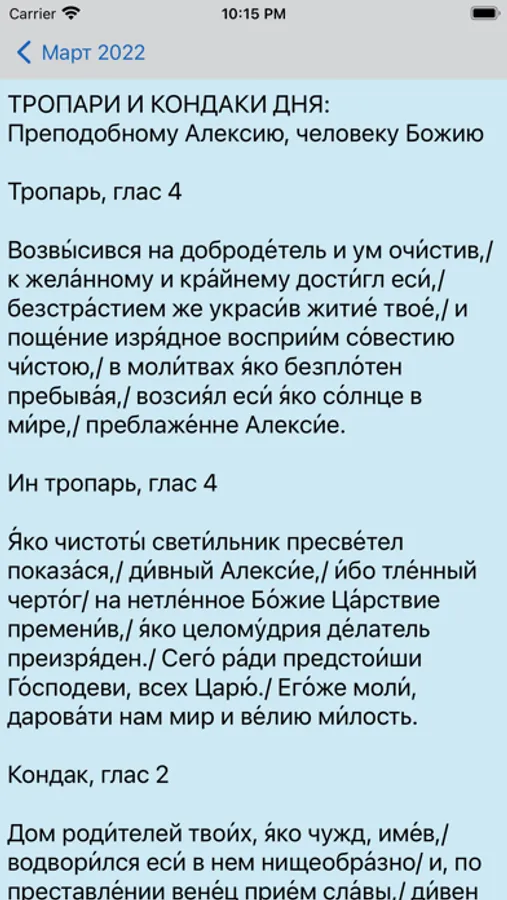 Православный календарь на 2022 год с указанием празднуемых святых, евангельских и апостольских чтений на каждый день, тропари и кондаки дня, мысли свт. Феофана Затворника на каждый день. Для работы приложения не требуется доступ в интернет.