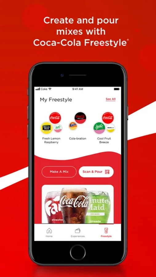 - Create your own custom beverage mixes and pour from any Coca-Cola Freestyle® machine.
