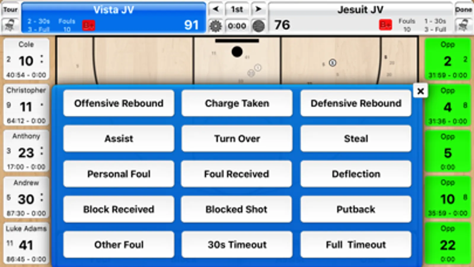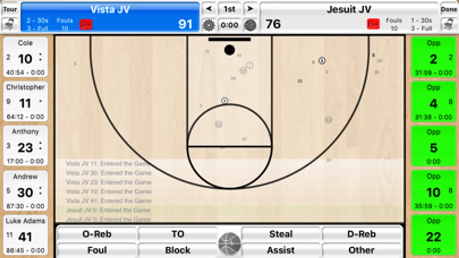 - Add makes, misses, and shot locations with an intuitive touch system.