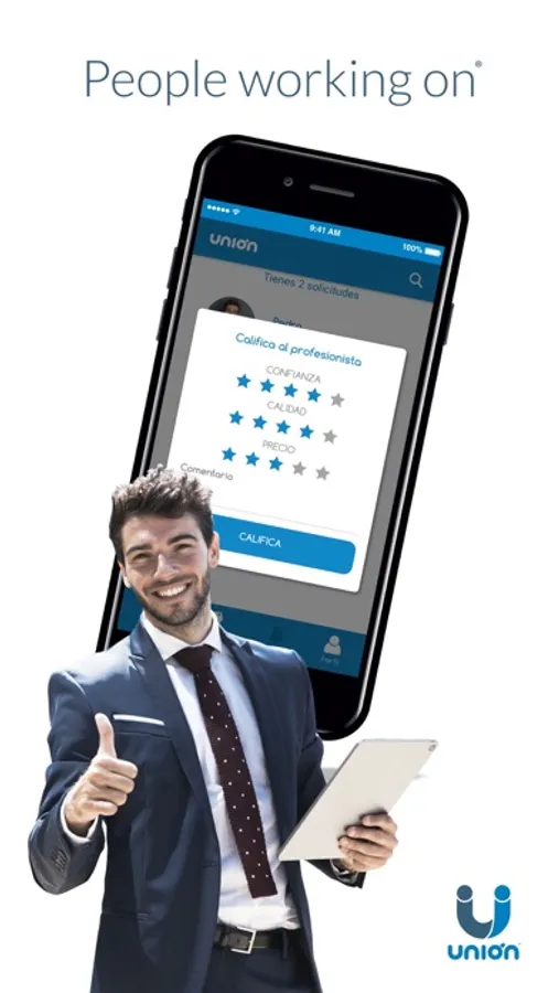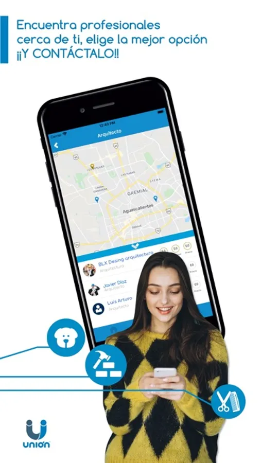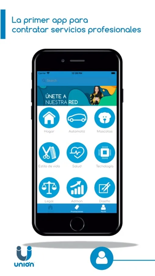 Regístrate como usuario, es gratis. Busca profesionales a través de nuestra app, unión organiza los profesionales por medio de categorías, esto hará que tu búsqueda sea más efectiva, además puedes revisar sus habilidades y valoraciones para que elijas a la mejor opción para ti.