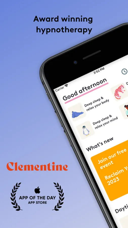 Feel calmer, gain confidence, get better sleep & reduce anxiety. Clementine is the hypnotherapy app for busy women who want to find their inner calm, reduce anxiety, ditch self-doubt and get a great night’s sleep.