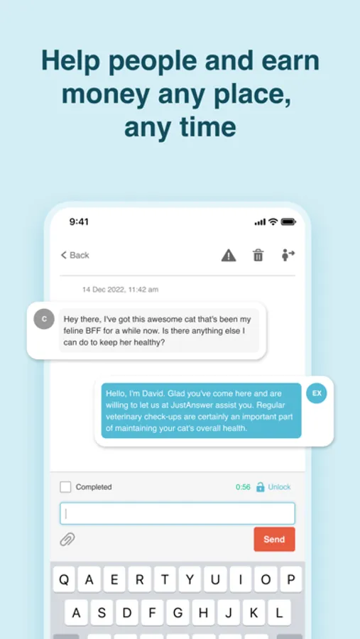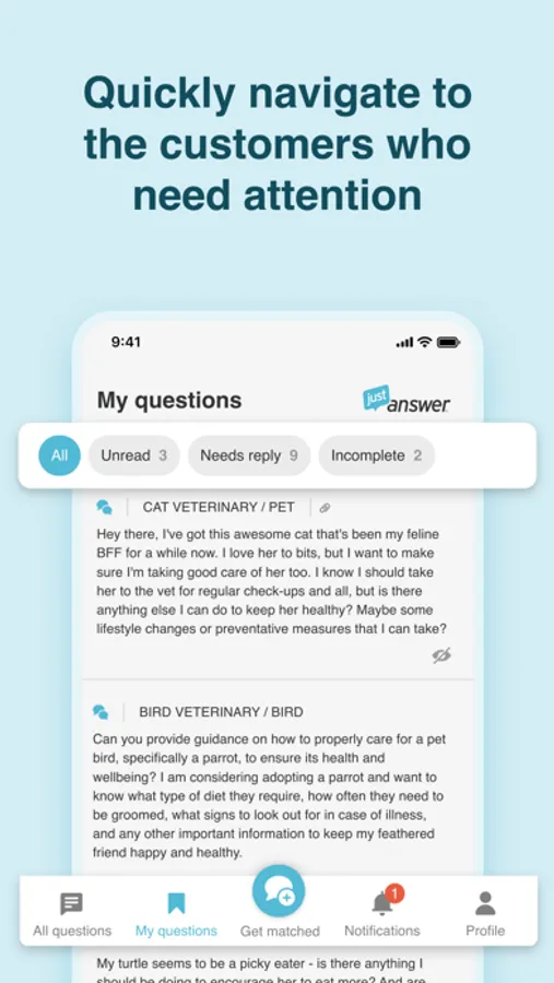 The JustAnswer Expert app makes it easier than ever to stay connected with customers. Enjoy the freedom and flexibility of answering questions and managing your workload from anywhere at any time. Whether you’re at your job, travelling, or just away from your desk, you can provide a great customer experience wherever you are.