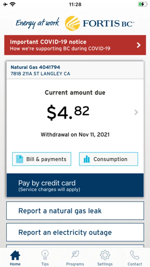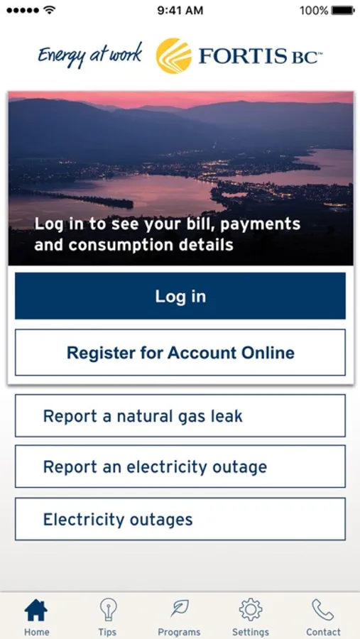* Register your FortisBC natural gas and electricity accounts in the mobile app