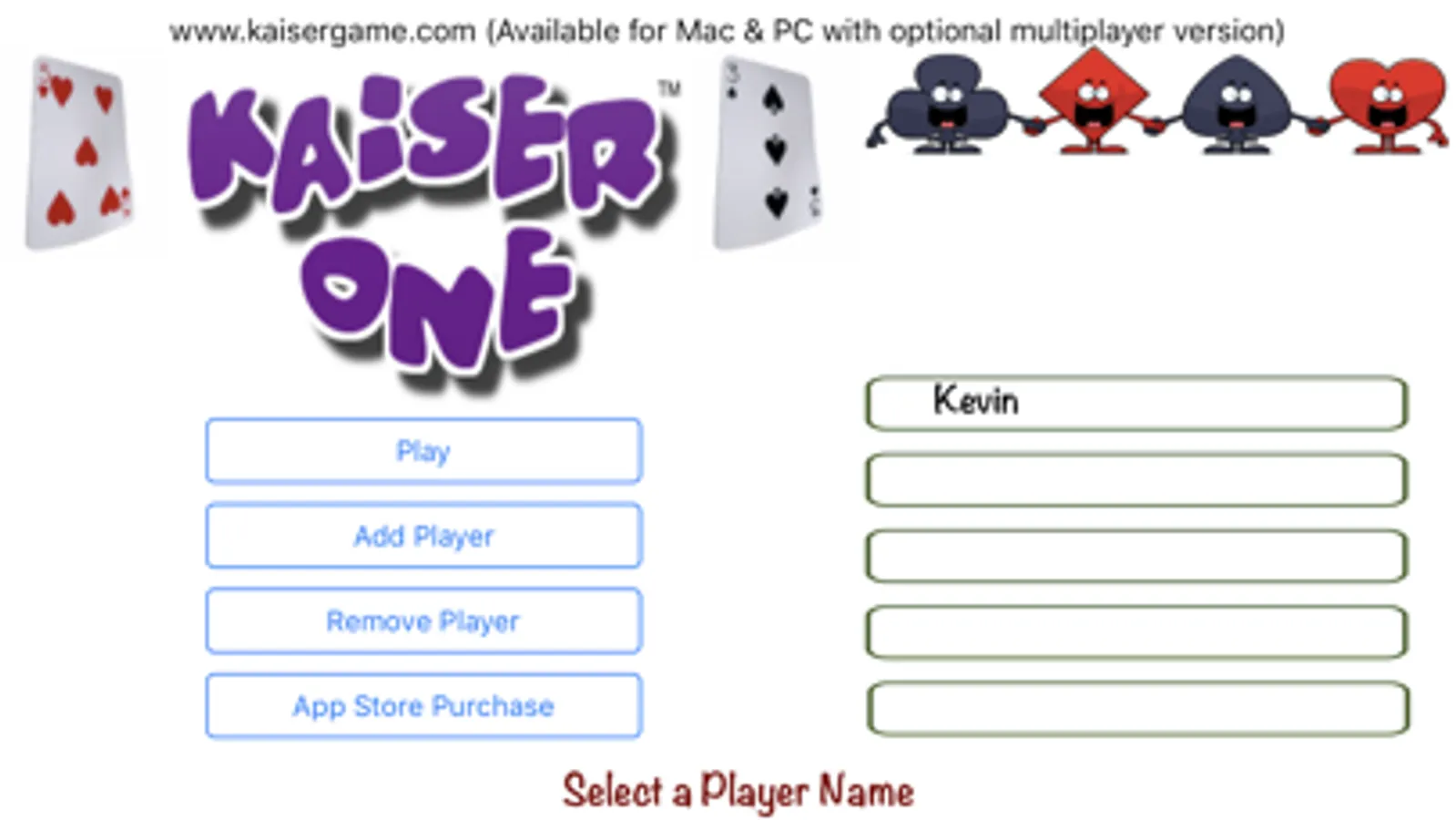 Kaiser One is the official Single Player Version of the popular Saskatchewan card game. Released in 2017 for multiple platforms. Also available for Mac and PC computers.
