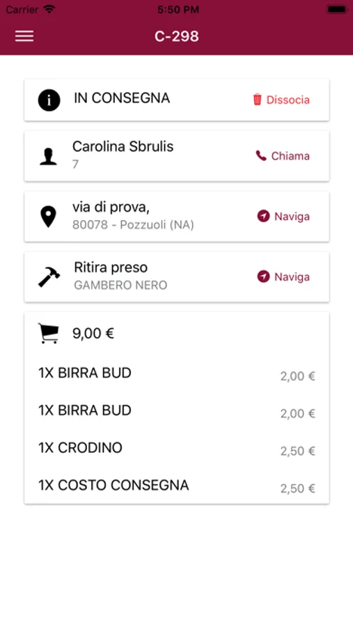 - Indirizzo del Cliente (con Call To action NAVIGA - per raggiungere nel più breve tempo il domicilio del Cliente);