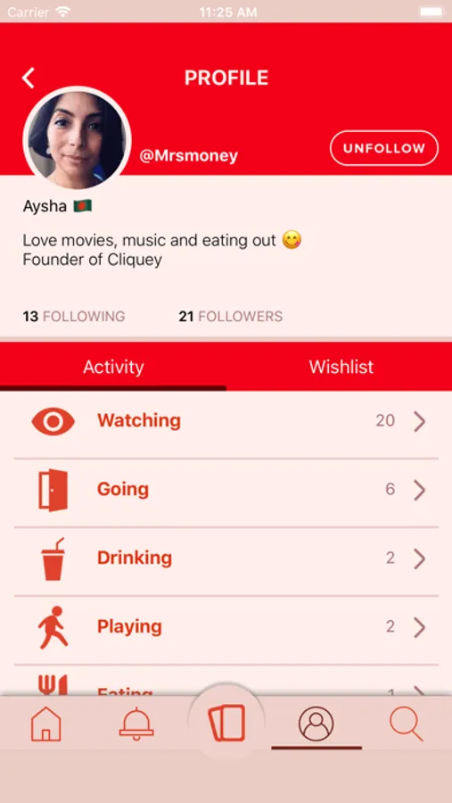 Our activities and experiences make us who we are. The things we do, the music we listen to, the movies we watch, the places we go, the food we eat. With Cliquey, you can record the activities you have done, are doing and want to do in the future. Cliquey will enable you to connect with others who share your interests.