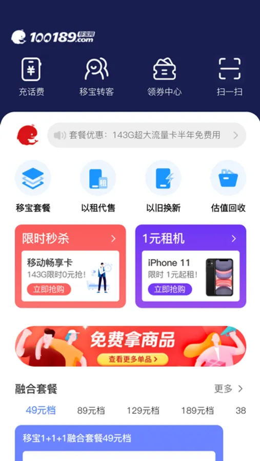【融合套餐】机卡一体化合约套餐,手机和电话卡融合搭配,性价比更高。