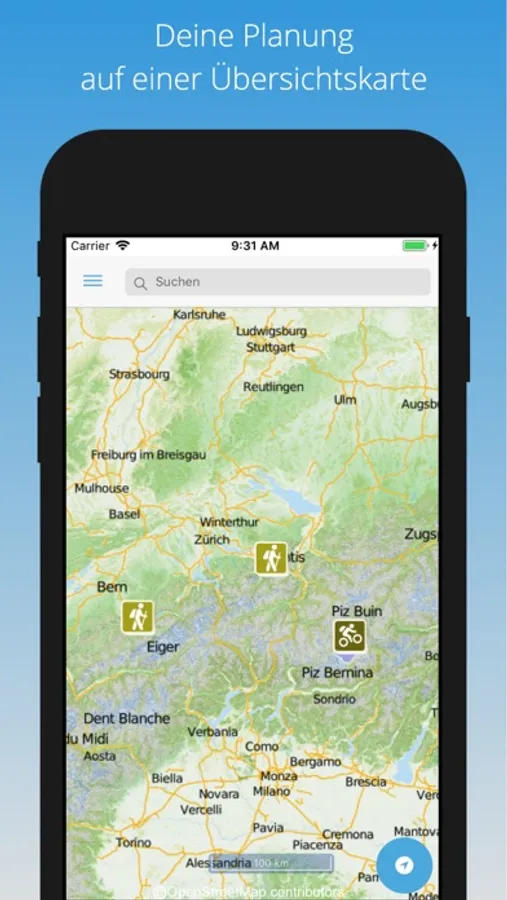 Detailed hiking map of the alps. Available as offline map and available as online version. Load routes and maps into your device to be independent from internet connection.