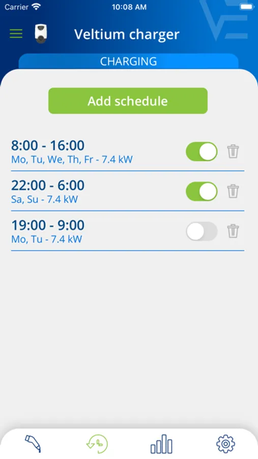 Take control of your VELTIUM chargers and manage the charge of your electric vehicle in a simple way. Install the App and you can: