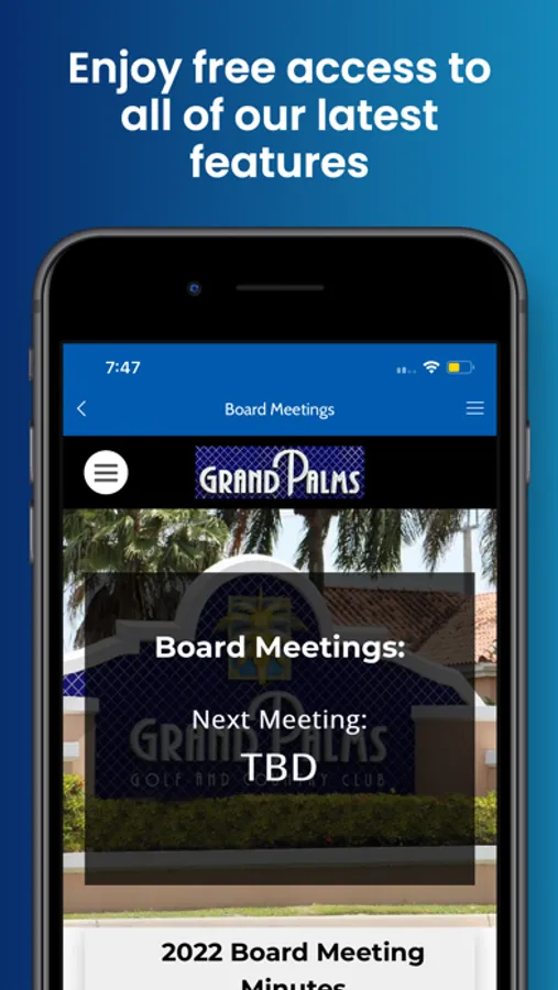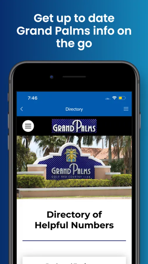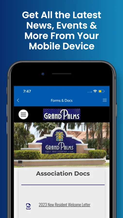 We are pleased to announce the release of our new mobile app. Download this free app to receive up-to-date community information from the Grand Palms Community, including news, events, and more. You will be able to also receive geofenced notifications about upcoming situations in the community.