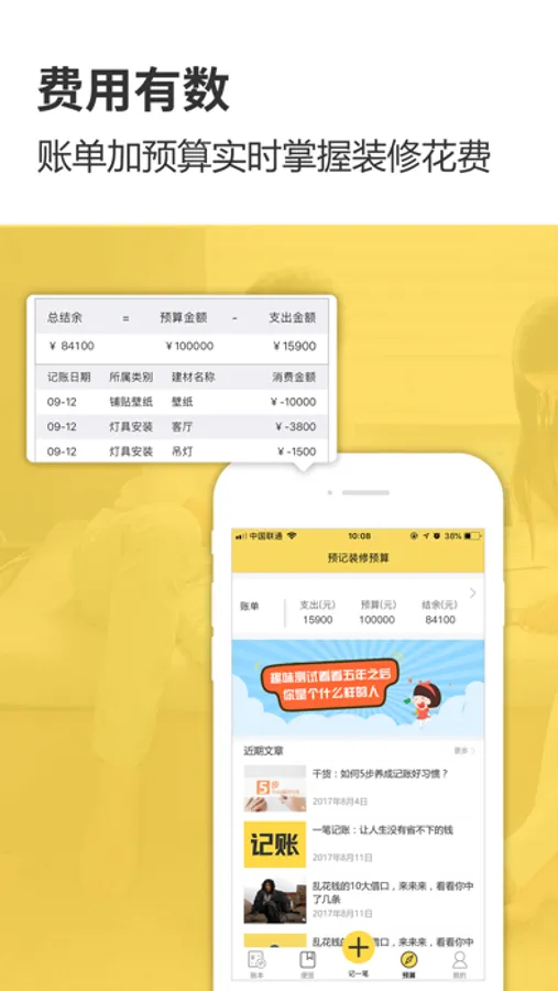 1)装修预算:费用有数,实时掌控装修花费