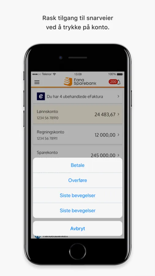 Pålogging med fingeravtrykk eller personlig kode gjør det lett blant annet å sjekke saldo, gjennomføre betalinger og få full oversikt over sparingen din – rett fra mobilen.