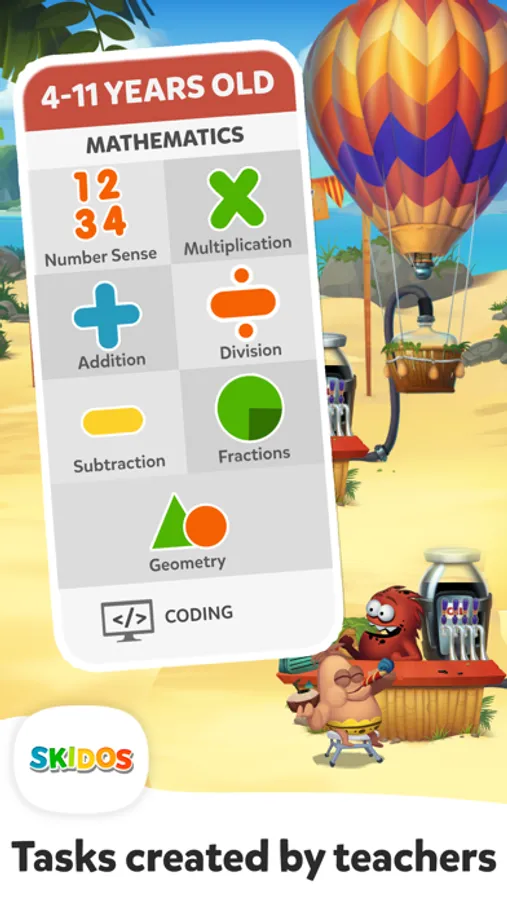 Kids have different learning styles. All SKIDOS games give children the option to pick subjects (math or coding), grade (1st,2nd,3rd,4th,5th grade) & topic, & progress with problem-solving.