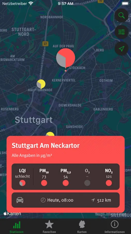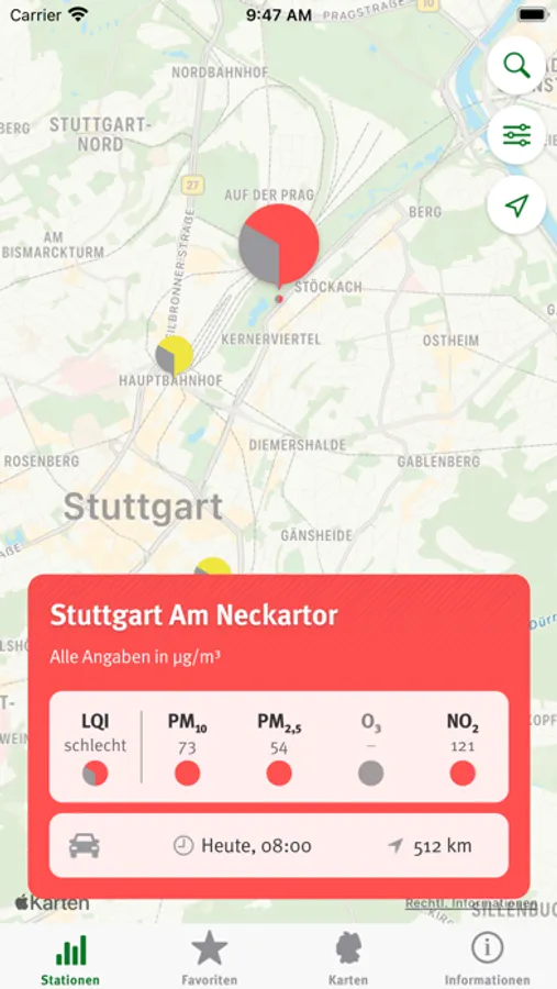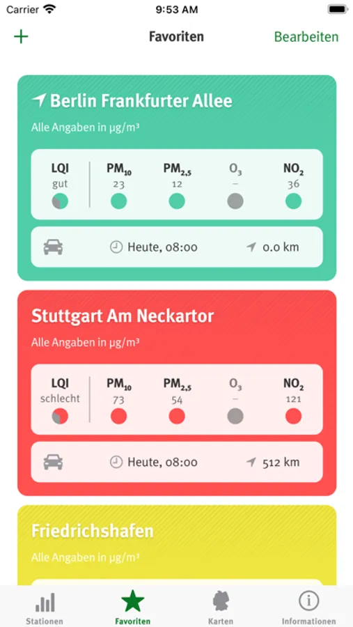 - Finden Sie stündlich aktualisierte Informationen zur Luftqualität einer Messstation in Ihrer Nähe oder aus Ihrer Favoritenliste.