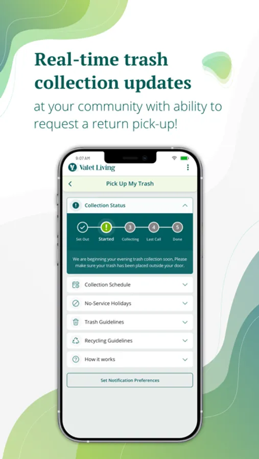Never miss a trash pickup with real-time updates and notifications about your nightly trash collection, as well as the ability to request a Service Valet return to pick up your trash!
