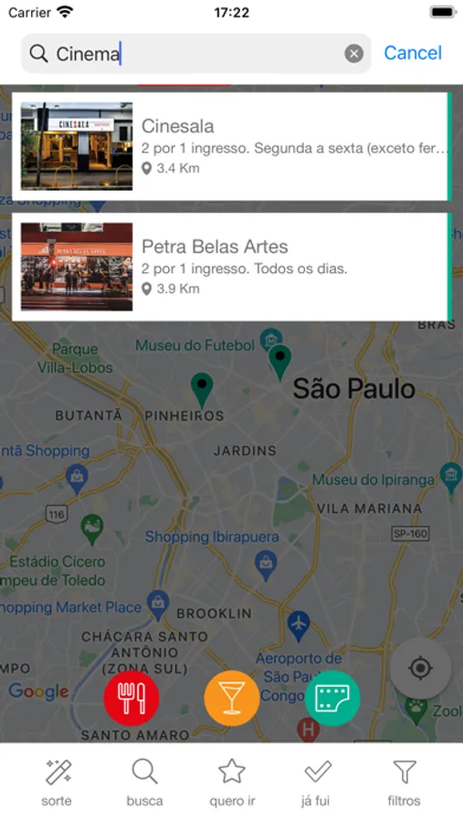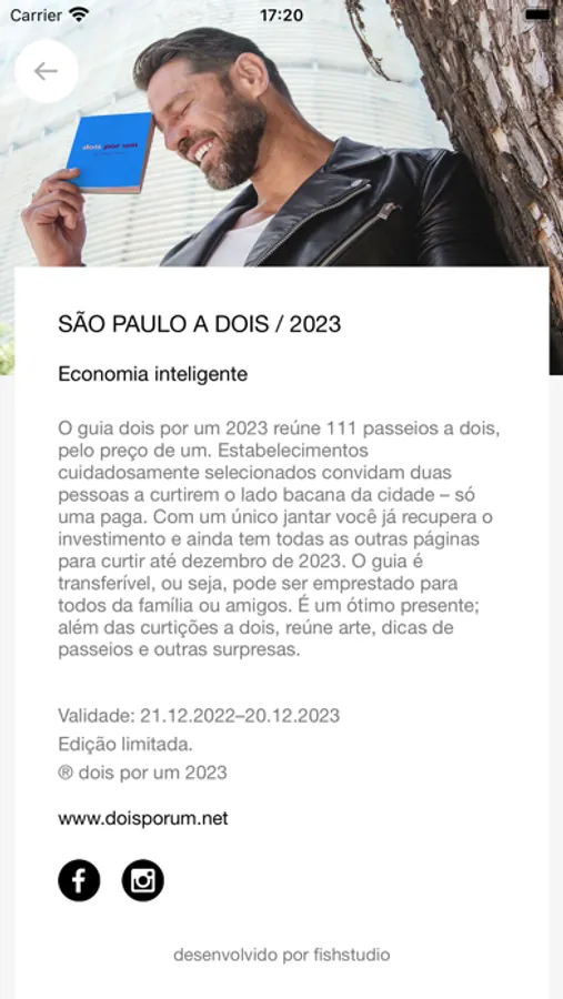 O livro dois por um continua igual, leve-o sempre para destacar os vouchers, como de costume. O app vem para somar: agora você leva o mapa de SP no celular, acessa os participantes, a localização, os detalhes, as atualizações, marca os lugares visitados e se organiza por região.