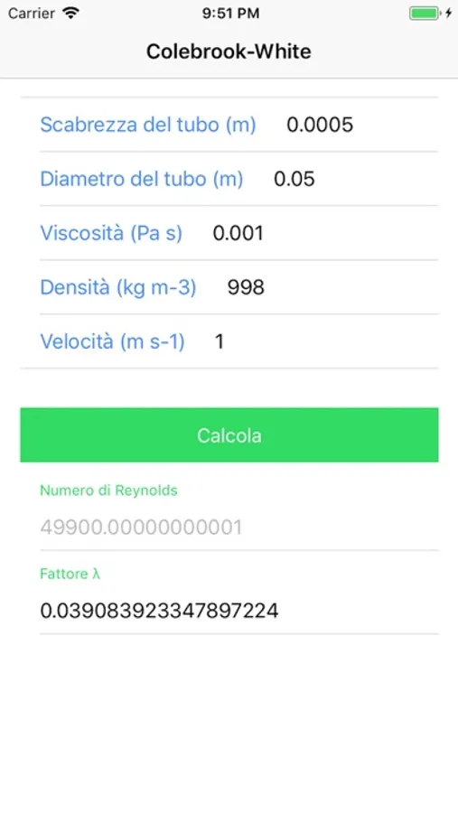 Calcola in maniera veloce la formula di Colebrook - White. Da un lavoro di tesi di Nicole Iorillo.
