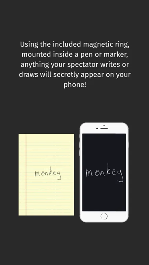 Combined with a specially designed sensor board, the ThoughtCast lets you see anything your audience member writes or draws from across the room. Just slip the board into a standard folio pad, put the included ring magnet on or inside any pen, pencil, whiteboard or permanent marker, and ThoughtCast does the rest! ThoughtCast scales your spectators drawing and displays it in a way that is easy to read, making this the perfect tool for mentalists.