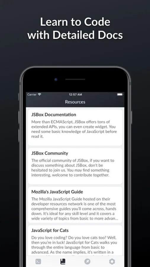 JSBox is an Integrated Development Environment for JavaScript. You can learn to code JavaScript here, as we provide tons of utilities to enhance the development experience.