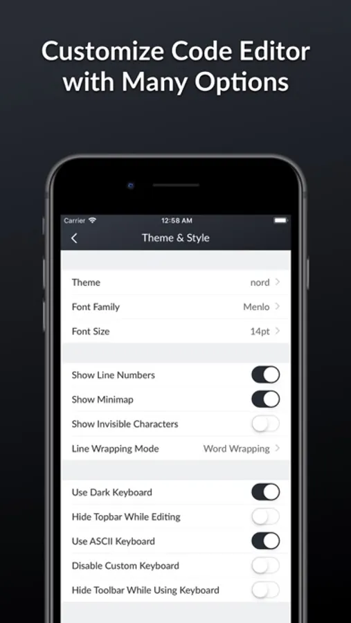 - A beautiful editor to write JavaScript, multiple themes, auto-completion, and snippets...