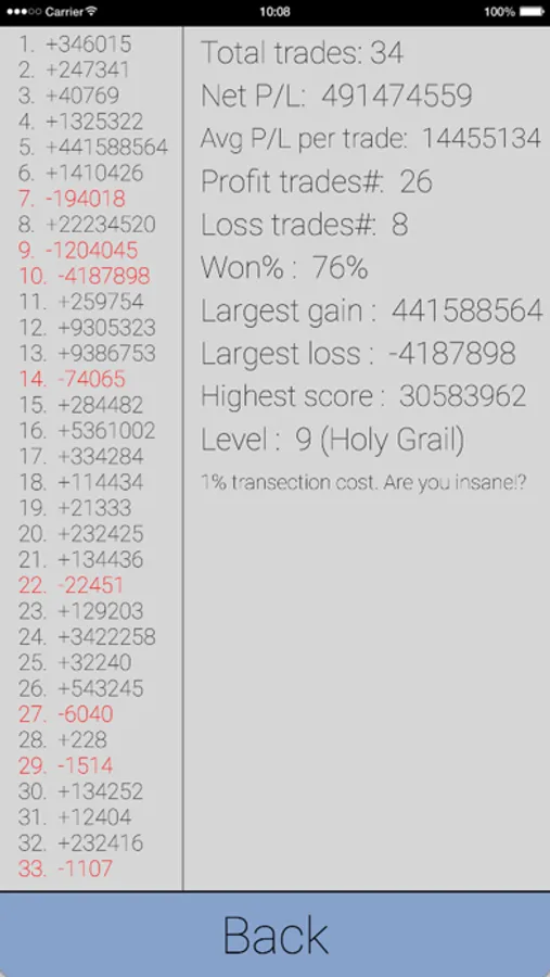 Level 8 (Insane Trader) , Capital requirement 5,000,000 , Transaction Cost 1%