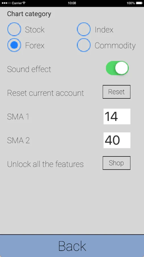 Choose between 4 categories including Stocks, Index Future, Forex and Commodities.