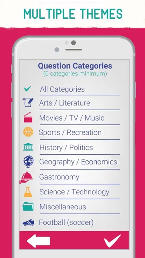 • Customization of games, with the choice of question themes, and amount of teams/players.