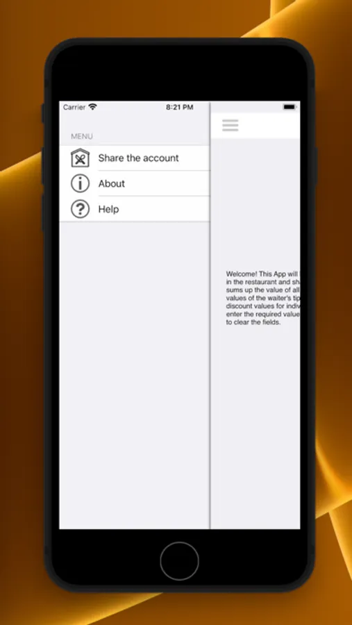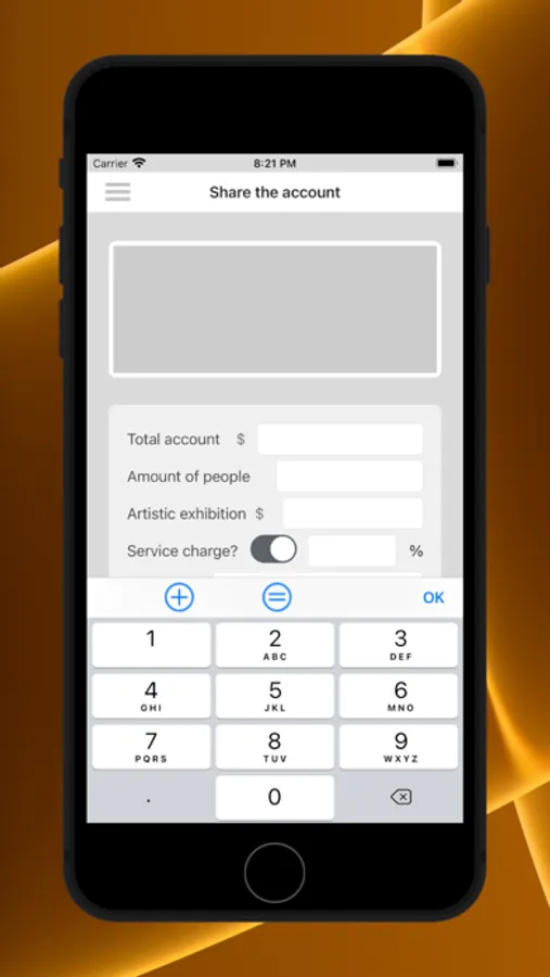 This app is meant to help you when you order the restaurant bill and share the values with your friends or family. It takes the total amount of the account and divides by the amount of people, assigning a value to be paid by each, you simply enter the values of the consumption, the additional fees and the amounts that will be paid individually and the app does the calculation for you .