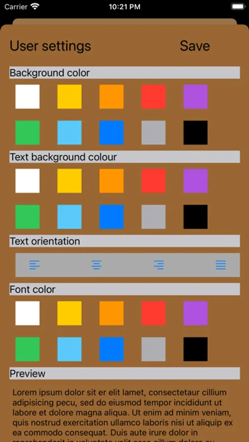 Adapt the appearance of the app to your needs. You can change the color and text alignment.