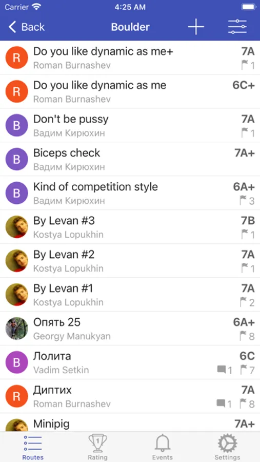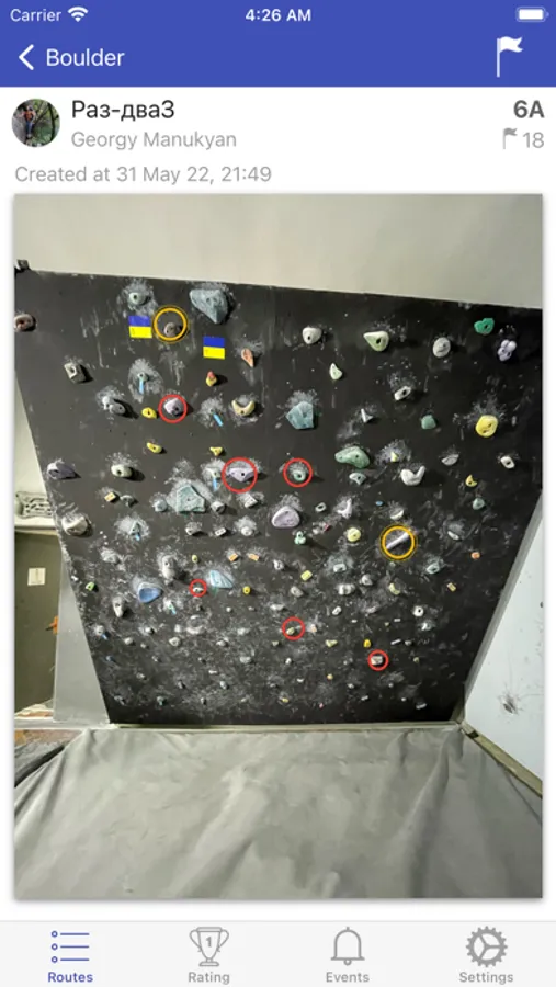 You can create and view routes, mark finishes, participate in the rating of your climbing wall.