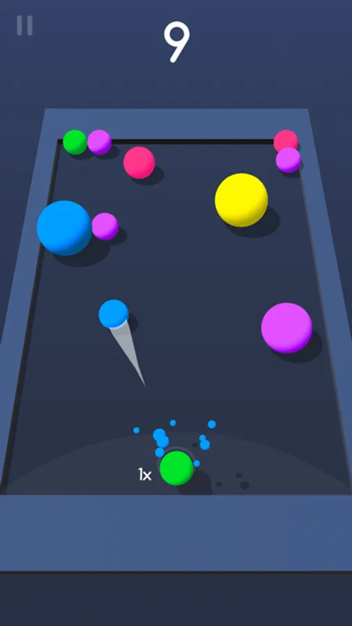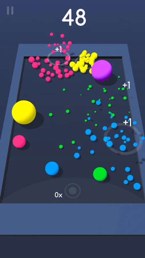 Fuse balls together to get bigger balls, and blow them up in order to get a high score!