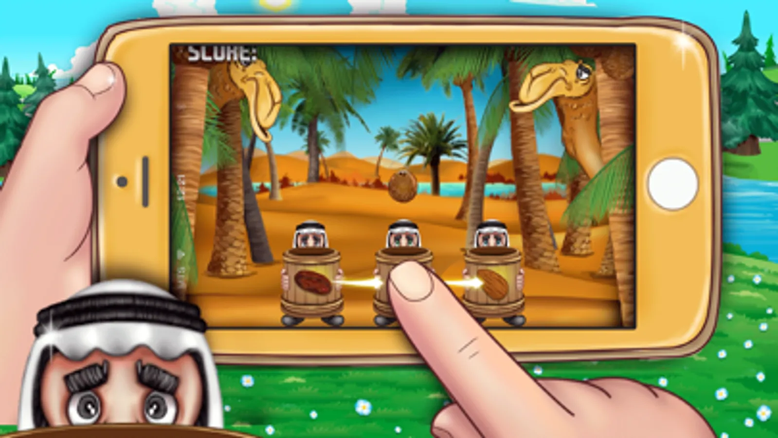 Desert summer days are warm and harvest season is upon us so we gathered around the only oasis in the desert to be in the oasis festival and start singing all the oasis song, three Arabian men come to the oasis with the bucket in their hand with traditional clothing, people call them Bucketheads but we will call them The Bucketeers. As the oasis songs start playing they will come between the coconut and date trees and with their buckets to collect the fruits falling from the trees. Camels have gathered around to watch all the fruits being collected in the baskets, they will collect coconuts, dates, oranges, almonds, and pomegranate.